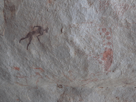 The paintings are very vibrant and bright even after all these centuries and we speculated that it was done with the colored stones on the desert floor that had been mixed with blood or fat thus a mineral compound. We did not find any artifacts dealing with the rock art but we did find other artifacts that were left behind by the artists.
