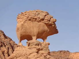 Tassili N'Ajjer National Park is an 80,000 square kilometer area in the southeast corner of the Sahara Desert in Algeria near the Libyan border.